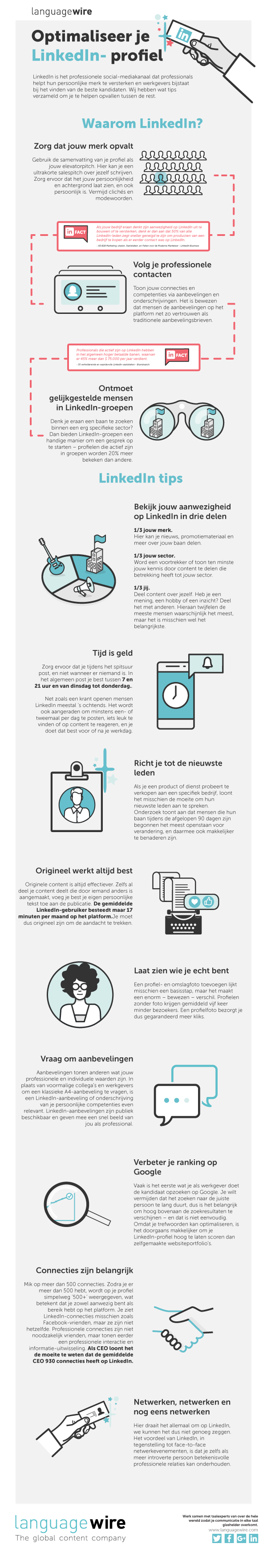 Nu weet je hoe je het meeste haalt uit LinkedIn. Gebruik deze handige infographic om onze tips niet te vergeten. Je vindt er de belangrijkste punten uit deze blogpost.