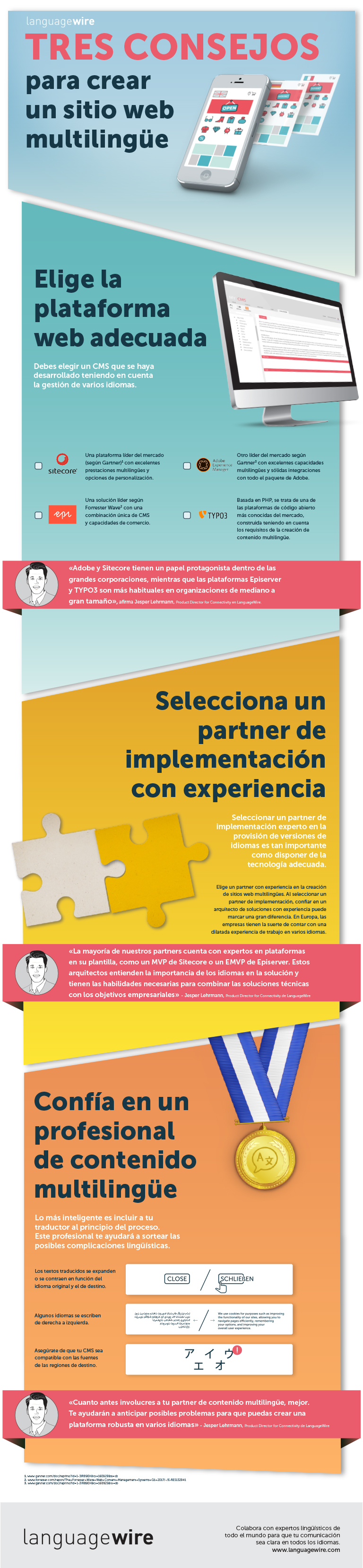 Un sitio web disponible en varios idiomas ofrece numerosas ventajas. Llegarás a más personas, obtendrás más tráfico, proporcionarás una experiencia mejor y aumentarás la conversión. Sin embargo, crear un sitio web multilingüe es complejo. Tendrás que evaluar cuidadosamente la tecnología que vas a utilizar y encontrar a los partners adecuados con los conocimientos especializados que necesitas. Jesper Lehrmann, Product Director for Connectivity de LanguageWire, te ofrece a continuación sus consejos para ayudar a que tu proyecto de creación de un sitio web multilingüe sea todo un éxito.